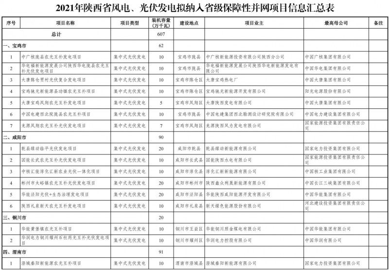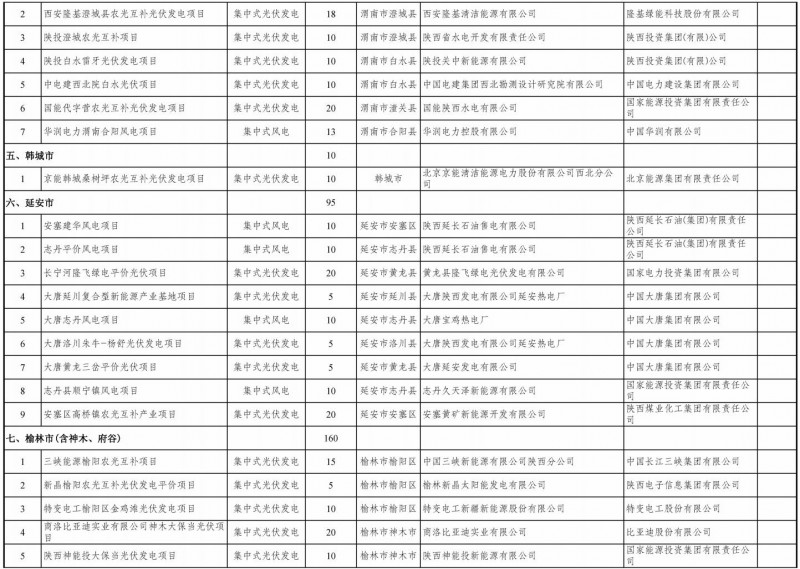 關于陜西省2021年風電、光伏發電保障性并網項目競爭性配置結果的公示