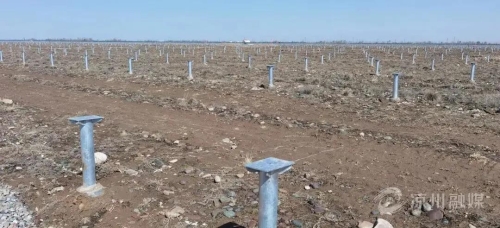 11月3日,在中電新能源武威涼州區70MW光伏發電項目現場,數臺引孔機、打樁機全部到位,機械轟鳴,正在進行作業。一邊是投入運營的已建50MW中電一期、二期項目,另一邊是正在建設中的三期光伏項目,一排排光伏支架基礎樁整齊排列,施工人員正在緊張有序地忙碌著。