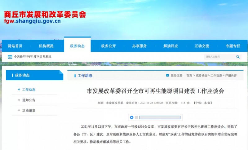 11月22日下午,商丘市發展改革委召開關于風光電建設工作座談會,對各縣(市、區)下發的“關于風光電新能源項目建設事宜的通知”收回,暫停實施,并提出妥善處理新能源有序開發、產業融合、保護群眾利益等方面之間關系。