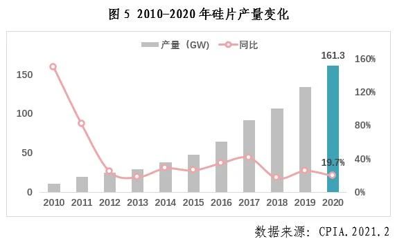 (二)產業規模持續擴大盡管受到年初的疫情沖擊、7-8月多晶硅料企業安全事故及新疆地區疫情導致的硅料供應緊張、以及7月開始由于光伏玻璃、EVA膠膜等供應緊張導致的原輔材料價格上漲等黑天鵝事件,我國光伏產業在國內外市場的推動下,規模持續擴大。其中,多晶硅產量39.2萬噸,同比增長14.6%;硅片產量161.3GW,同比增長19.7%;電池片產量134.8GW,同比增長22.2%;組件產量124.6GW,同比增長26.4%。