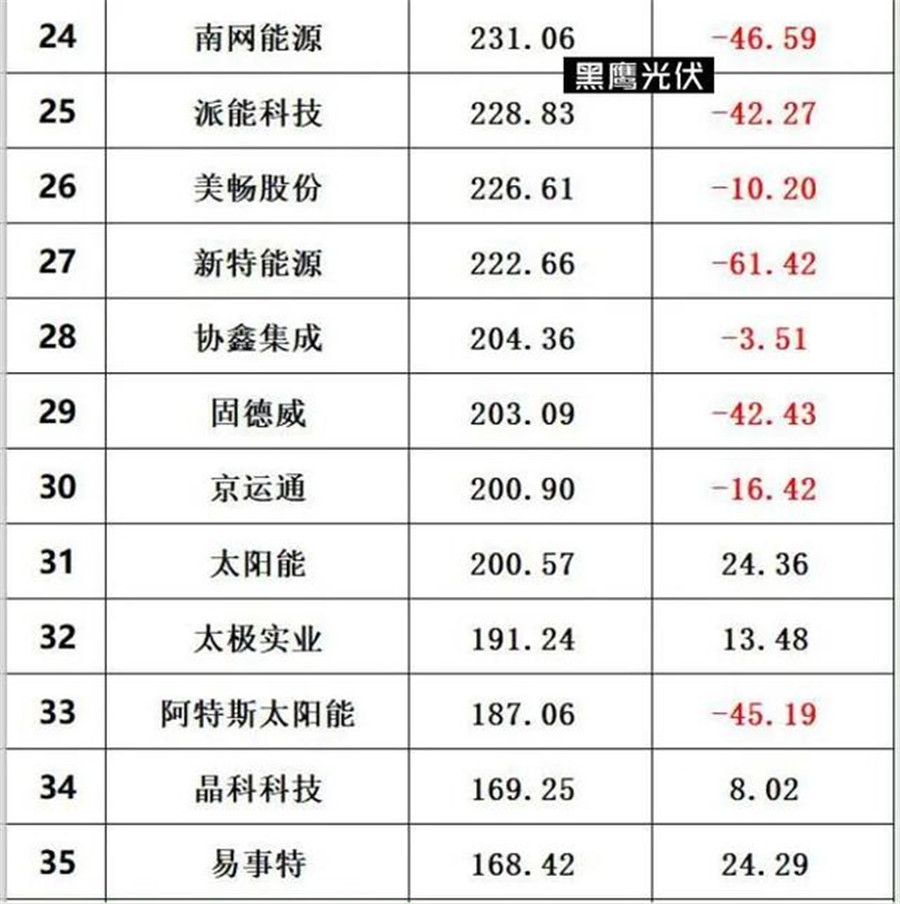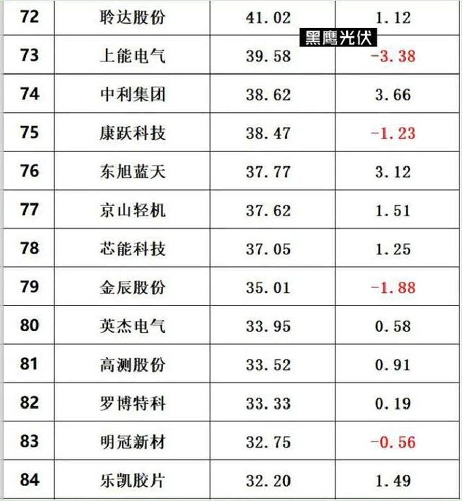 在黑鷹光伏整理出的最新的光伏總市值排行榜上,排在前15的企業,總市值在過去幾個交易日里都出現了下跌
