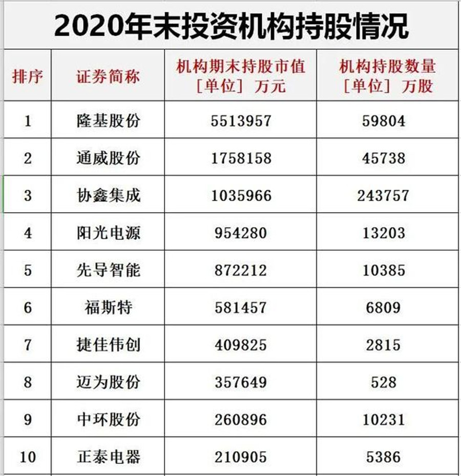 這也意味著,不少機構投資者在2020年第四季度集中拋售了手里的“光伏籌碼(股票)”。