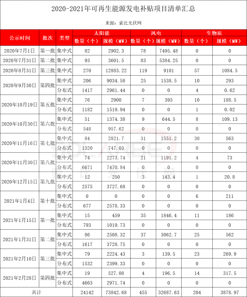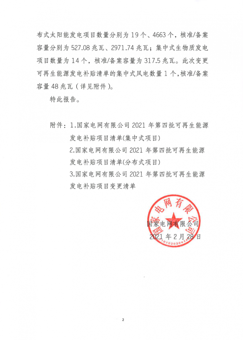 2020年2月28日,國網公布2021年第四批可再生能源發電補貼項目清單。
