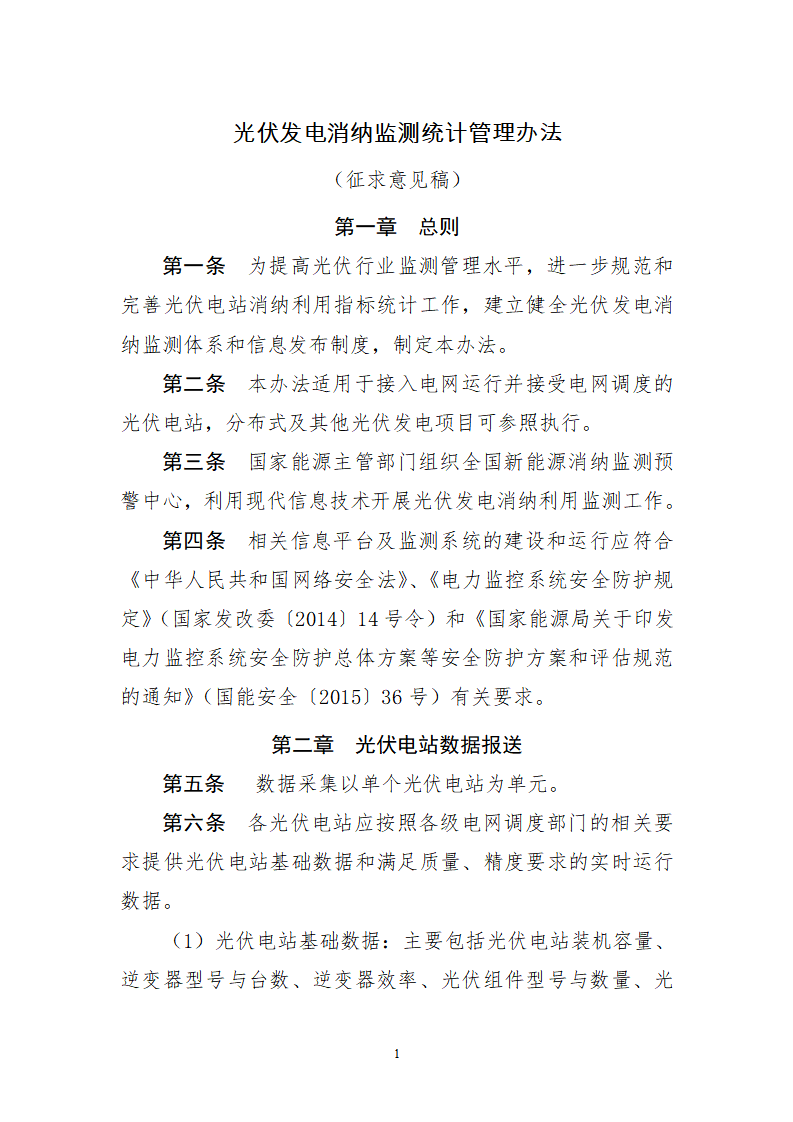 附件:光伏發電消納監測統計管理辦法(征求意見稿)