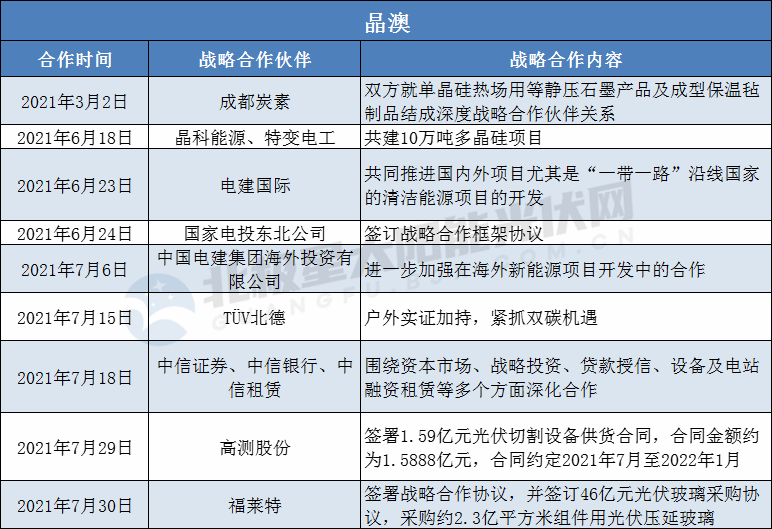2021年1-7月部分光伏企業戰略合作簽約如下: