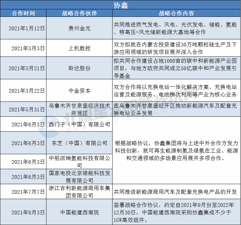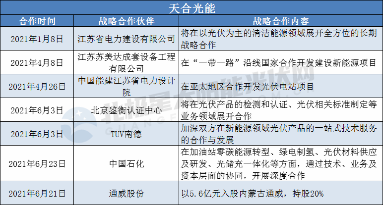 2021年1-7月部分光伏企業戰略合作簽約如下: