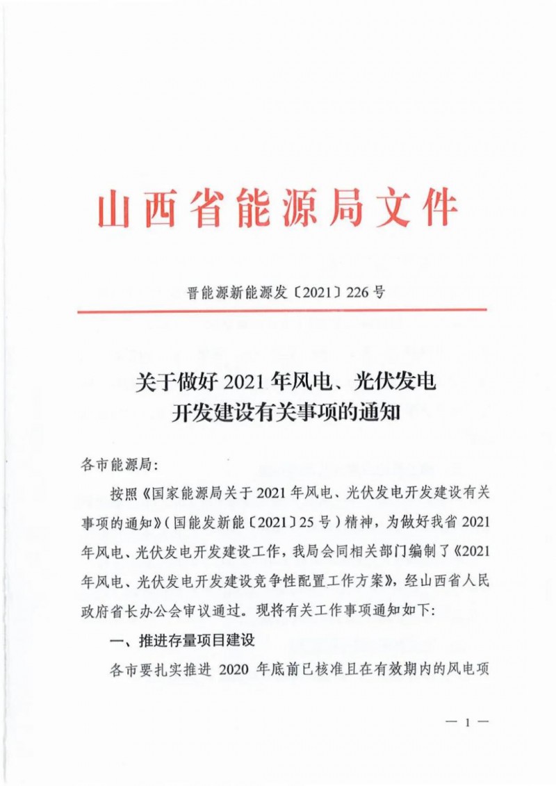 8月26日,山西省能源局印發(fā)《關(guān)于做好2021年風(fēng)電、光伏發(fā)電開(kāi)發(fā)建設(shè)有關(guān)事項(xiàng)的通知》。通知中對(duì)山西省的2021年的光伏、風(fēng)電工作做了規(guī)劃。
