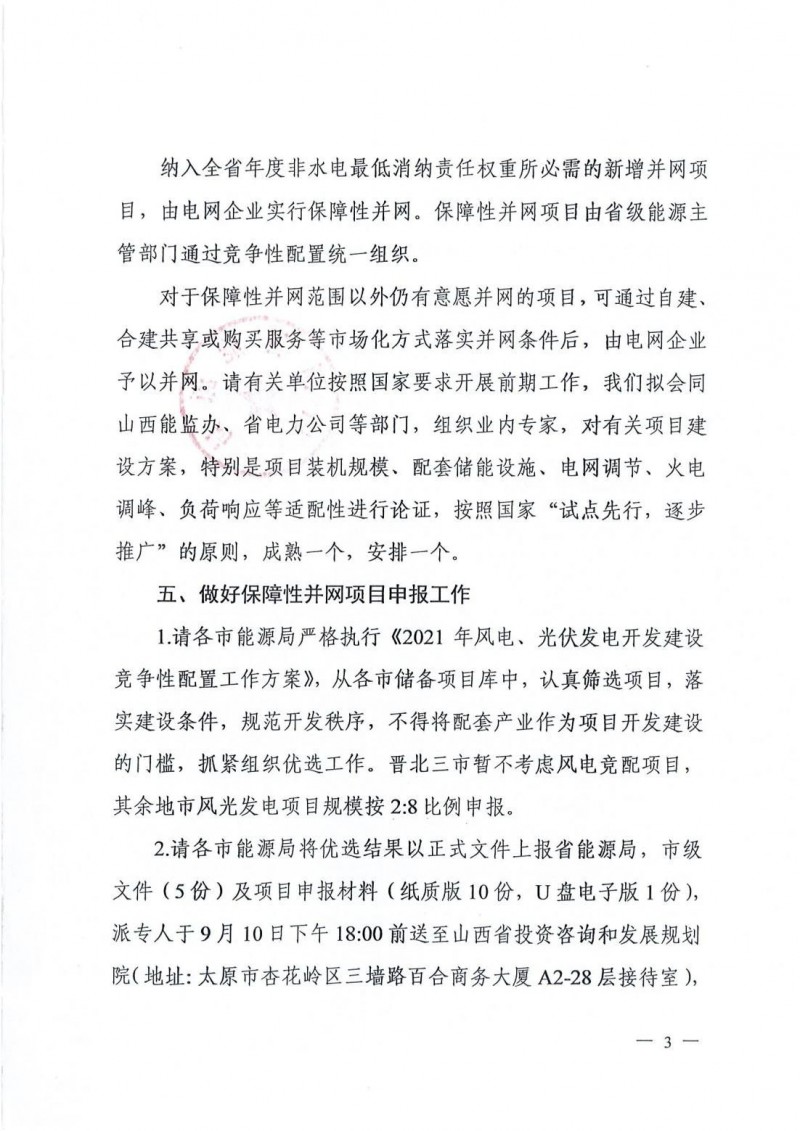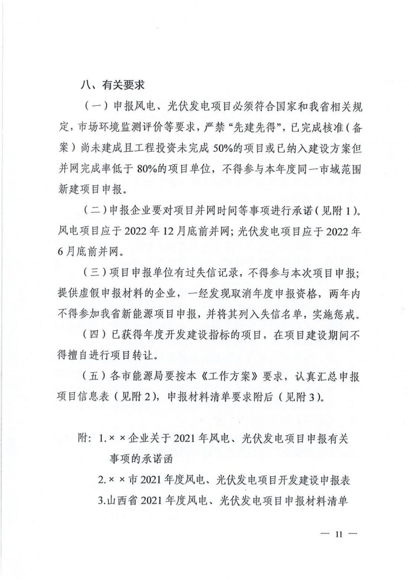 8月26日,山西省能源局印發《關于做好2021年風電、光伏發電開發建設有關事項的通知》。通知中對山西省的2021年的光伏、風電工作做了規劃。