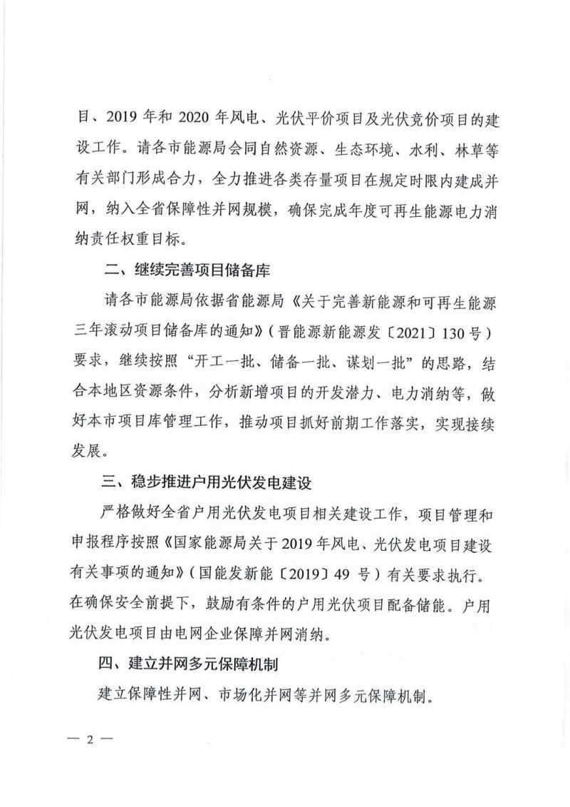 結合山西省非水電消納責任權重最低值,經電網公司測算,2021年、2022年山西省需新增風電、光伏發電并網規模1120萬千瓦。文件明確晉北三市暫不考慮風電競配項目,其余地市風光發電項目規模按2:8比例申報。