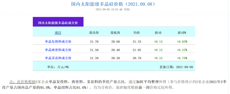 9月8日,硅業分會發布多晶硅最新價格信息。
