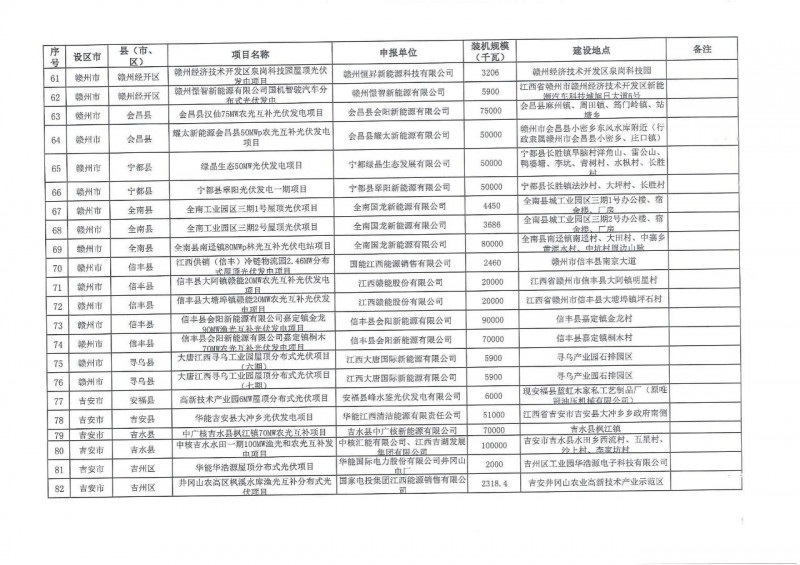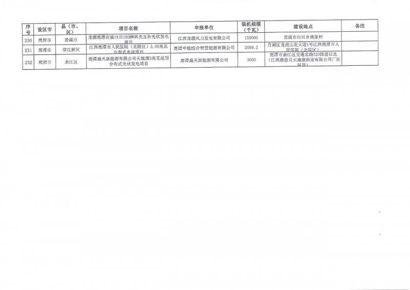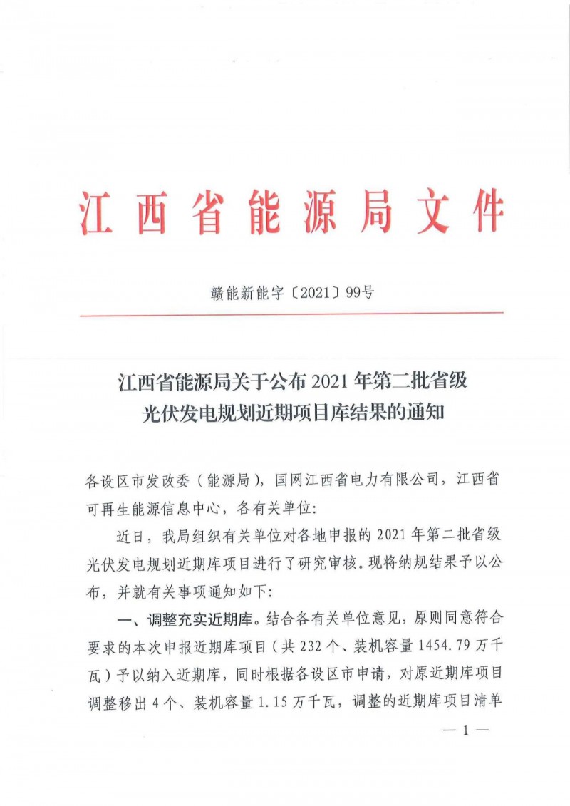 江西省2021年第二批光伏發電規劃近期庫調整納入項目共232個、1454.79萬千瓦項目,其中