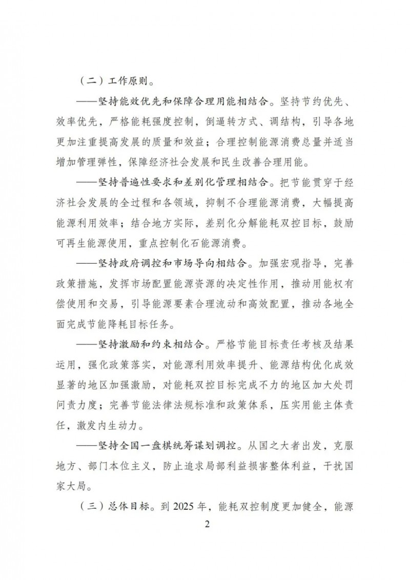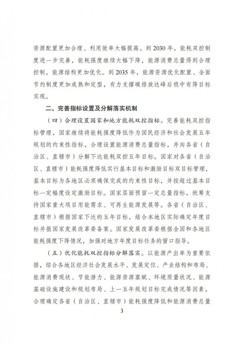 到2025年,能耗雙控制度更加健全,能源資源配置更加合理、利用效率大幅提高。到2030年,能耗雙控制度進一步完善,能耗強度繼續大幅下降,能源消費總量得到合理控制,能源結構更加優化。到2035年,能源資源優化配置、全面節約制度更加成熟和定型,有力支撐碳排放達峰后穩中有降目標實現。