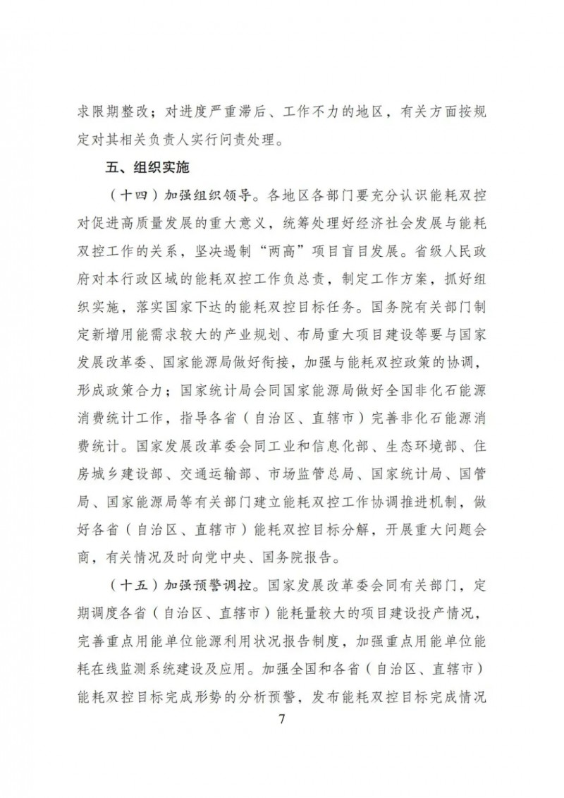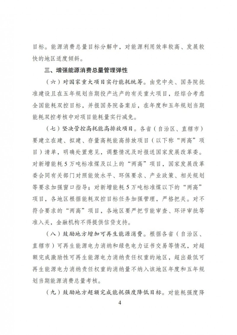 對新增能耗5萬噸標準煤及以上的“兩高”項目,國家發展改革委會同有關部門對照能效水平、環保要求、產業政策、相關規劃等要求加強窗口指導;對新增能耗5萬噸標準煤以下的“兩高”項目,各地區根據能耗雙控目標任務加強管理,嚴格把關。對不符合要求的“兩高”項目,各地區要嚴把節能審查、環評審批等準入關,金融機構不得提供信貸支持。