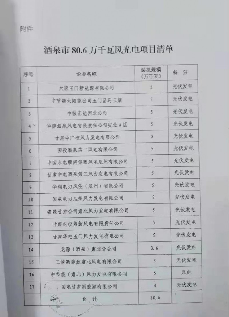 近日,甘肅酒泉、定西相繼公布十四五”第一批(2021-2022年)風電、光伏發電項目競爭配置結果,酒泉市2021年風、光建設規模為806MW,其中光伏756MW,風電50MW;