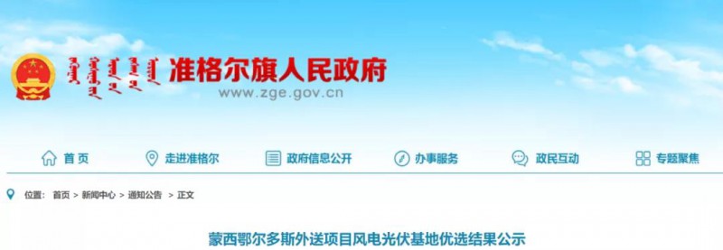 9月30日,準(zhǔn)格爾旗人民政府公示了項目的競爭性配置結(jié)果。詳見原文: