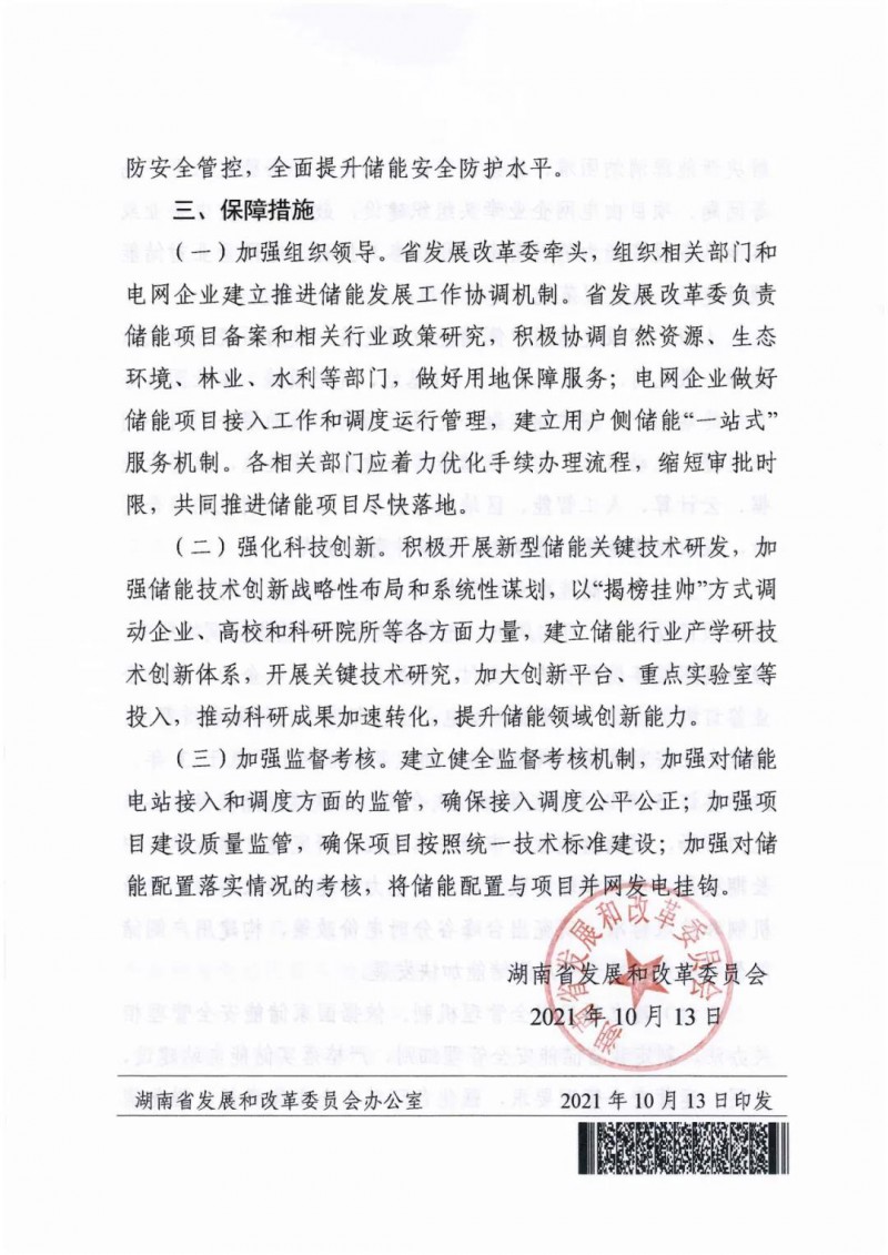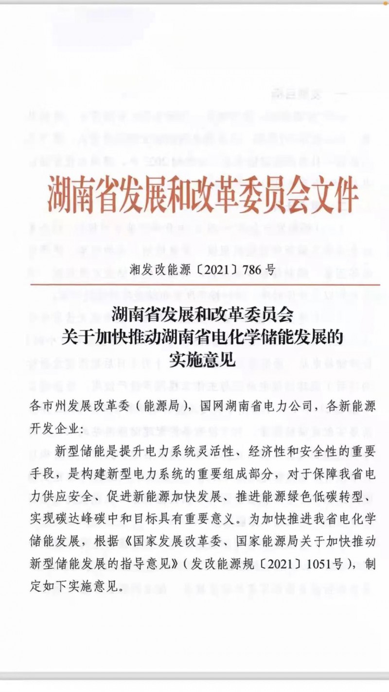10月13日,湖南省發改委下發《關于加快推動湖南省電化學儲能發展的實施意見》,文件明確以發展電網側獨立儲能為重點,集中規劃建設一批電網側儲能電站,力爭到2023年建成電化學儲能電站150萬千瓦/300萬千瓦時以上。