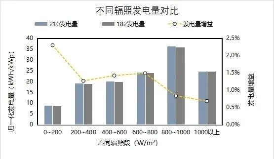 2. 210組件的低輻照性能優勢顯著,對發電量有明顯提升。