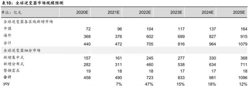 此外,擴產難也是國產芯片廠家面臨的一大問題。據了解,國內芯片新廠,從落地到驗證產線所需時間一般為1-3年,這也就意味著新增產能釋放需要較長時間。業內專家推測,在2022年6月份左右將迎來國產芯片的較大規模釋放,逆變器芯片供需將重新達到平衡的時間點。四、未來展望在全球碳中和目標共識下,光伏風電等可再生能源發電形式迎來前有未有的發展機遇,逆變器芯片市場也必將是一片開闊。據中金研究咨詢機構預測,到2025年全球光伏逆變器市場規模將增長至1096億元人民幣。按IGBT占逆變器價值量20%來算,2025年全球光伏逆變器用IGBT的市場規模將達到274億元人民幣。