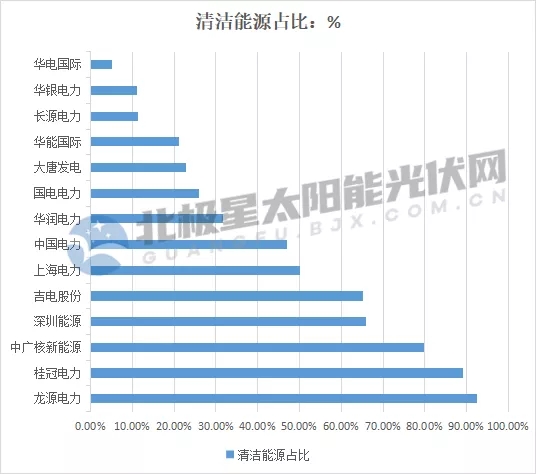 從清潔能源占比情況來(lái)看,龍?jiān)措娏Α⒐鸸陔娏Α⒅袕V核新能源、深圳能源、吉電股份、上海電力清潔能源占比超過(guò)50%,其中龍?jiān)措娏σ?2.5%遙遙領(lǐng)先,桂冠電力清潔能源占比達(dá)到89%,中廣核新能源為79.8%。