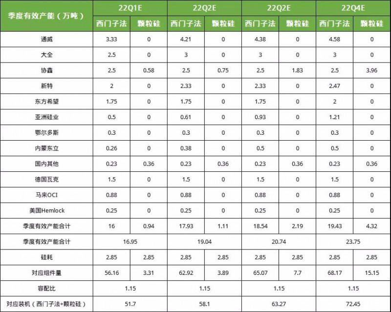 3. 22年顆粒硅潛在市場需求有望達22萬噸
