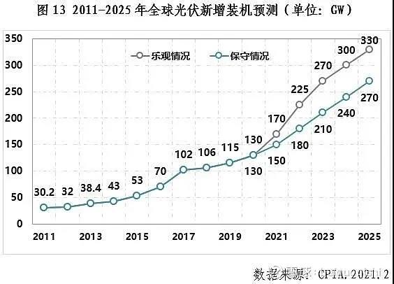 2022、2023年硅料產量預計分別為:83萬噸(76.73-89.35萬噸取中值)、126萬噸(123.05~129.3萬噸取中值,則2022、2023年硅料可支撐組件產量預計分別為:296GW、466GW,比2021年新增51%、137%,環比新增51%、57%,而中國光伏協會CPIA預測2022、2023年裝機中位值為205GW、240GW,乘以1.2容配比后對應組件需求:245GW、290GW,由此未來硅料價格走勢不言而喻了。