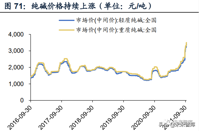 (2)短期景氣度:光伏玻璃供過于求,純堿及天然氣成本上行壓力難以向下順漲,盈利持續壓縮。信義光能、福萊特等新增產線陸續達產,部分在建產線也已具備點火條件,后續供給有望增加,但由于硅料帶動主產業鏈漲價,組件對光伏玻璃的需求支撐不足,庫存或呈增加趨勢,同時光伏玻璃行業又面臨純堿及天然氣價格快速上漲的成本壓力,根據卓創資訊,2021年7月,國內3.2mm光伏玻璃原片成本價格約16.22元/平,行業平均毛利率為1.87%,8月以來純堿及天然氣價格連續上漲,光伏玻璃成本進一步上行,恐將擊穿部分二三線廠商成本線,利潤持續承壓。