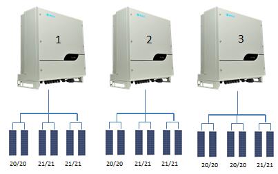 6. 3臺逆變器組件布局如下圖,三路MPPT,每路為兩路PV并聯(lián)輸入。