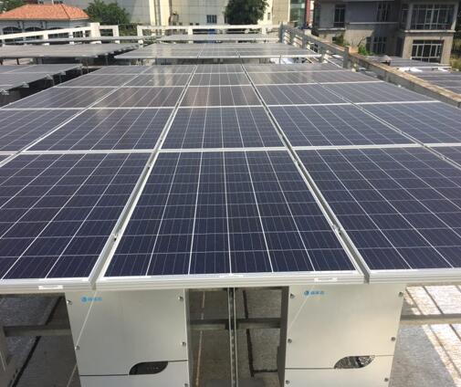 并網(wǎng)點就近380V接入電網(wǎng)。因屋頂周圍無承重墻,考慮逆變器的防護,通風(fēng)及接線方便,最終確定逆變器掛在組件支架上的方案。
