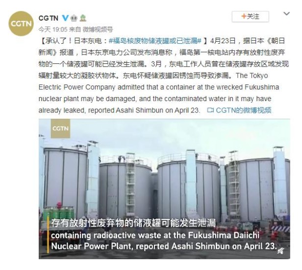 4月23日,據(jù)日本《朝日新聞》報(bào)道,日本東京電力公司發(fā)布消息稱(chēng),福島第一核電站內(nèi)存有放射性廢棄物的一個(gè)儲(chǔ)液罐可能已經(jīng)發(fā)生泄漏。3月,東電工作人員曾在儲(chǔ)液罐存放區(qū)域發(fā)現(xiàn)輻射量較大的凝膠狀物體。東電懷疑儲(chǔ)液罐因銹蝕而導(dǎo)致滲漏。