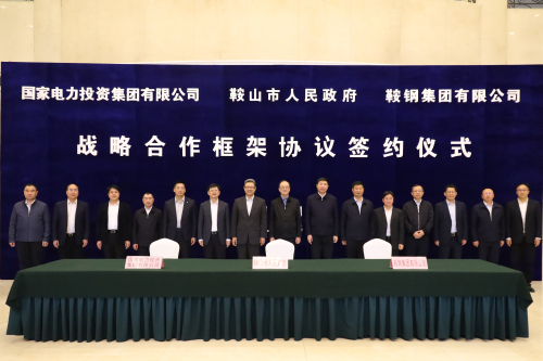 錢智民表示,國家電投將充分發揮央企在資金、技術、管理、人才等方面的優勢,立足鞍山市富集的風光資源和良好的區位優勢,持續加大清潔能源投資建設力度,聚焦綠電交通、清潔供熱、鄉村振興等重點領域,助力鞍山市清潔能源產業實現高質量發展。譚成旭指出,國家電投與鞍鋼集團有著豐富的合作經驗,希望雙方不斷加強技術交流,提升研發能力,在新能源開發建設、綜合智慧能源管理、材料研發、重點項目工程建設等方面加強合作,攜手打造央企合作新模式,為鞍山市發展貢獻央企力量。余功斌表示,希望三方能夠以本次戰略合作框架協議簽署為契機,為“雙鞍”融合提供強勁、清潔、經濟的發展新動能。鞍山市委、市政府將充分發揮自身服務職能,營造良好營商環境,確保各項合作項目快速落地。