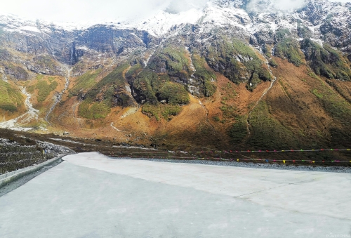 同為耿赤雪山下,中國(guó)電建承建的西藏裝機(jī)規(guī)模最大的水電工程大壩攔腰橫亙?cè)隍暄训慕校澜绾0巫罡?3449米)、落差最大(80米)的魚道層層疊疊的堆砌在大壩右岸陡峭山體上,宛如銀龍般躍起騰飛,為大壩阻隔的上下游成功架設(shè)了一道魚類洄游的“鵲橋”。