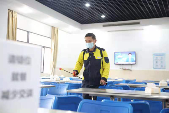 國網重慶璧山供電公司物業人員對員工食堂進行消毒殺菌