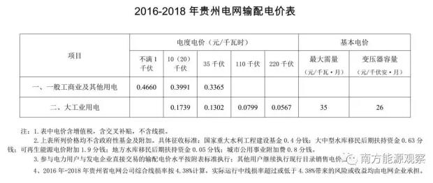 2016年3月7日,國家發改委批復了2016年-2018年貴州電網的輸配電價(具體如下表)。