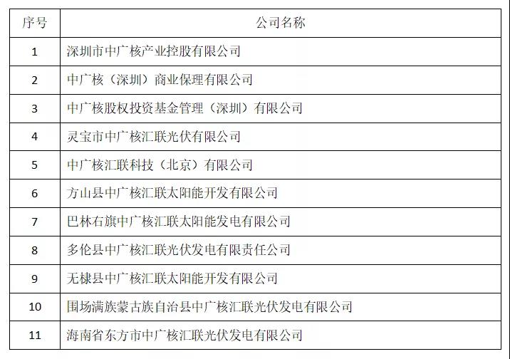 二、經檢索查詢發現,目前有深圳市中廣核產業控股有限公司、中廣核(深圳)商業保理有限公司等11家公司(附表)冒名使用“中廣核”字號或商標,對我集團品牌造成嚴重侵權。