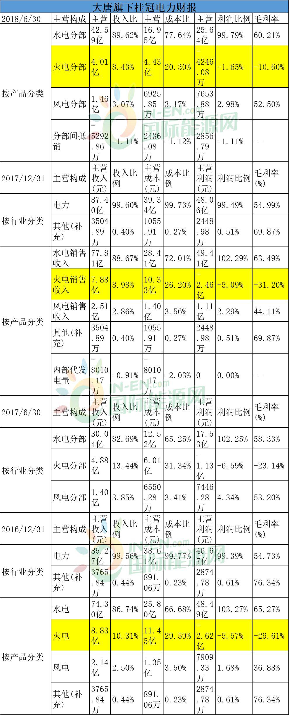 大唐集團旗下的上市公司桂冠電力(600236)財報顯示,火電板塊一直都在拖業績的后腿。2016年火電利潤占比是-5.57%,2017年上半年,火電利潤占比是-6.59%,到2018年上半年,火電利潤占比依然是負數。