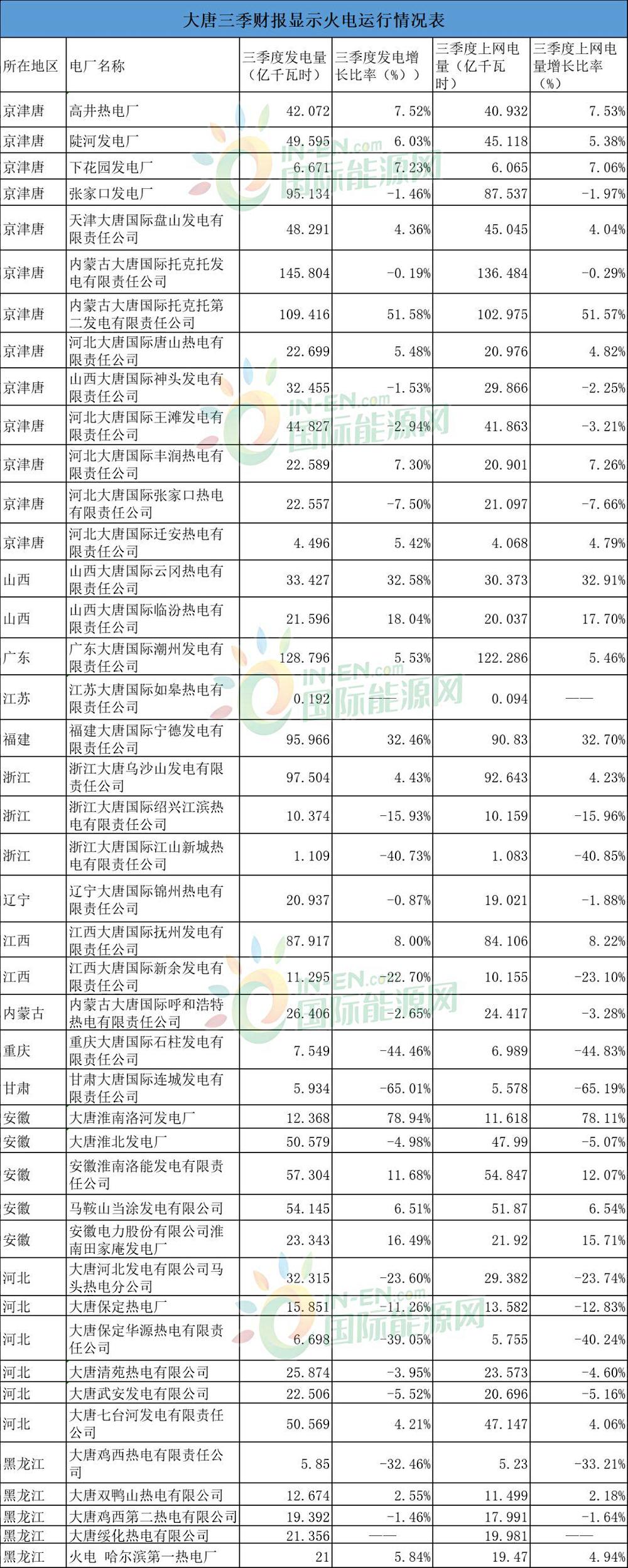 根據統計,大唐旗下火電廠在2018年前三季度有20家出現了發電量同比降低的情況,占比近50%,其中最嚴重的是甘肅大唐國際連城發電有限責任公司,其發電量下降幅度高達65.01,上網電量下降幅度也達到65.19%。