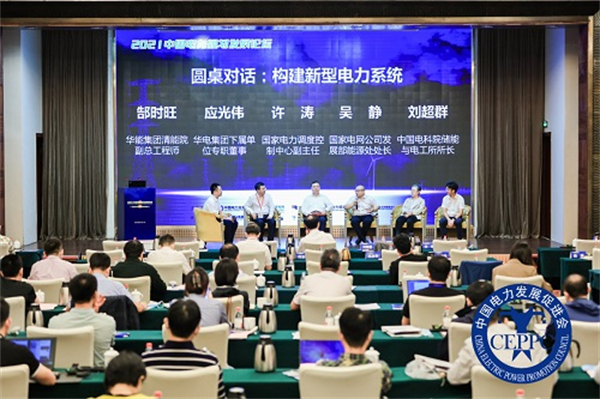 圓桌對話環節,華電集團下屬單位專職董事應光偉、國家電力調度控制中心副主任許濤、國家電網公司發展策劃部處長吳靜、華能清潔能源技術研究院副總工郜時旺、中國電科院儲能與電工新技術研究所所長劉超群與主持人分別就碳達峰碳中和對電力系統的要求和挑戰、新型電力系統特征、國網新能源云應用、系統調節能力和儲能發展等話題展開深度對話,并接受現場提問與臺下參會代表一起面對面交流。