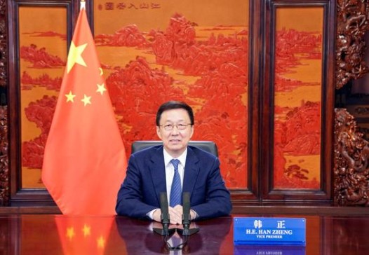 10月18日,中共中央政治局常委、國務院副總理韓正在北京以視頻方式出席第二屆“一帶一路”能源部長會議并發表致辭。新華社記者 殷博古 攝