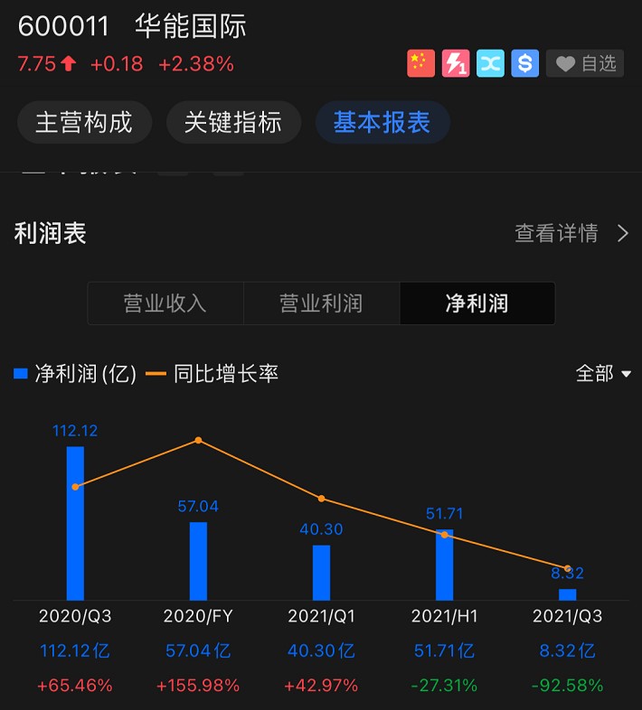 華能國際近日發布2021年第三季度報告,第三季度實現營業收入498.90億元,同比增長16.82%。前三季度實現凈利潤8.32億元,同比降低91.42%。