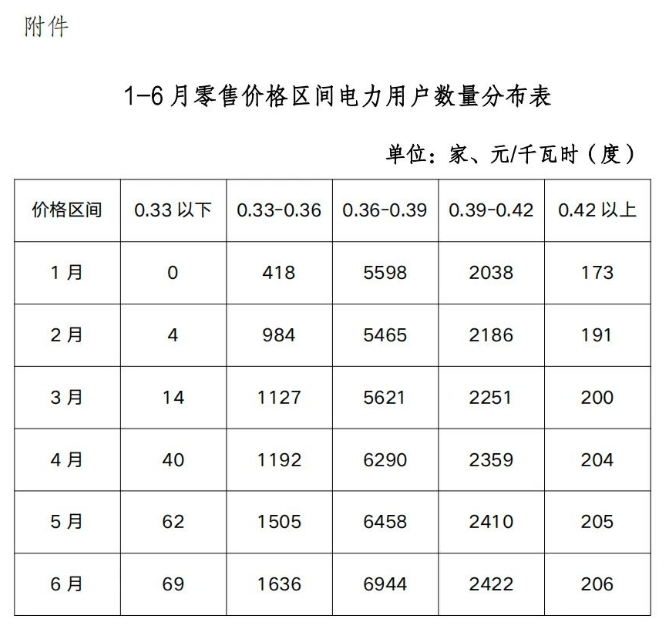 7月17日,陜西電力交易中心發布告陜西電力市場經營主體書。文中提到,2025年1月1日起,陜西電力現貨市場啟動長周期結算試運行,疊加新能源裝機快速增長及電煤價格下行因素影響,省內電力交易整體價格持續下探,售電公司在批發市場的累計購電均價從1月0.362元/度下降至6月0.339元/度,降幅達0.023元/度;但是零售用戶從售電公司購電的平均價格僅下降0.003元/度,部分零售用戶從售電公司購電的價格遠高于市場平均水平(0.364元/度)。