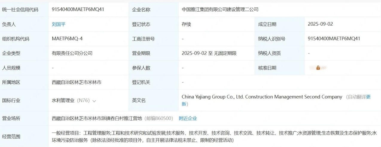 中國(guó)雅江集團(tuán)有限公司建設(shè)管理二公司,負(fù)責(zé)人:劉國(guó)平,統(tǒng)一社會(huì)信用代碼為91540400MAETP6MQ41,企業(yè)注冊(cè)地址位于西藏自治區(qū)林芝市米林市派鎮(zhèn)吞白村雅江營(yíng)地,所屬行業(yè)為水利管理業(yè),