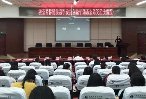 深化校企合作,引進優質人才。5月29日,遠光軟件與長沙理工大學獎學金捐贈、校企合作協議簽字儀式暨第十期職業與人生大講壇成功舉辦。雙方簽署了校企合作協議及捐贈協議,遠光軟件向長沙理工大學教育基金會捐贈設立“遠光軟件獎學金”,建立全方位校企合作,共同培育高素質應用型人才,為實現企業技術創新與優質人才引進做出新的貢獻。