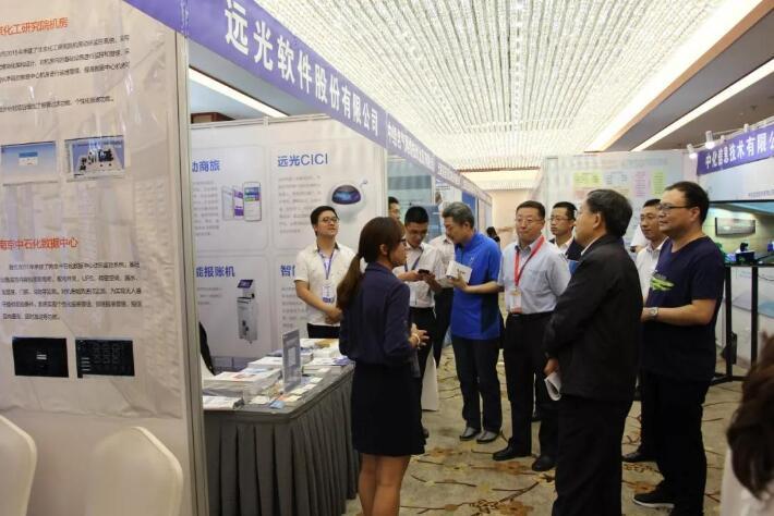 圖注:中國石油天然氣股份有限公司規劃總院副院長葛雁冰、中國石油集團工程技術研究院有限公司副總經理趙彤等領導參觀遠光軟件展臺