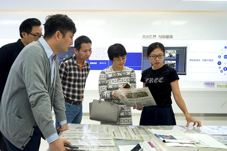 遠光軟件子公司珠海遠光移動互聯科技有限公司總經理王令將熱情接待了調研團。在遠光軟件展廳,沈寒英一行了解了公司的業務概況、產業布局、發展歷程和企業文化等,對遠光軟件近年來在社會信息服務及企業管理領域的創新技術和應用碩果表示肯定。