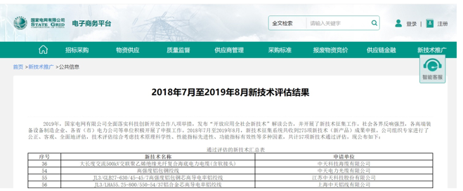 據悉,國家電網綜合考慮技術原理科學性、性能指標先進性、功能指標有效性等多種因素,本次共計57項新技術通過評估。通過專家評估的新技術(新產品)將被收錄至國家電網公司新技術推廣目錄。截至目前,中天科技累計有10項新技術(新產品)入選推廣目錄,是極少數國網系統外的、通過多項新技術(新產品)評估的單位。