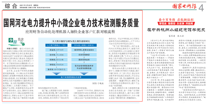 2020年下半年開始,國網(wǎng)河北電力財務(wù)部把自動化處理機(jī)器人(RPA)和人工智能(AI)技術(shù)結(jié)合,探索提升中小微企業(yè)客戶往來款項對賬及入賬效率的方法。經(jīng)過半年時間,該公司研發(fā)出財務(wù)自動化處理機(jī)器人,并于今年2月26日在河北電科院試點運(yùn)行。