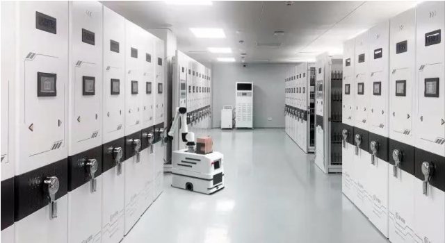 此外,還通過引入智能制造、物聯網技術,結合票據交收設備、裝盒設備、AGV機器人、智能密集架、智能檔案盒等智能終端,實現實物檔案從交收、裝盒、歸檔全過程的無人自動化管理,并與線上電子檔案對接匹配,強化一體化管理。