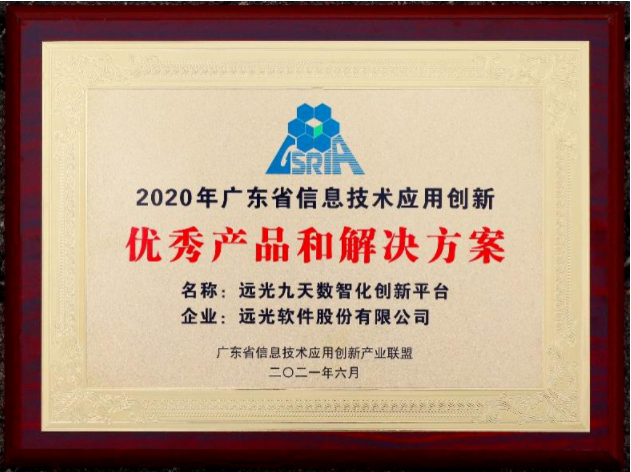 近日,遠光軟件自主研發的九天智能一體化云平臺(即遠光九天數智化創新平臺)憑借其強大的技術創新能力和在信創服務領域的突出貢獻,榮獲廣東省信息技術應用創新產業聯盟頒發的“2020年廣東省信息技術應用創新優秀產品和解決方案”獎。