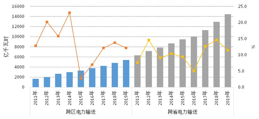 圖 2011~2019年跨區、跨省電力輸送電量情況
