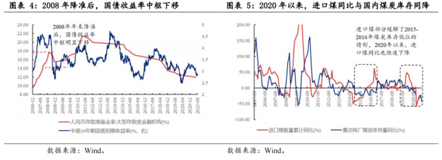 2020年以來,進口煤數量與國內煤炭庫存同降,煤炭價格上漲持續時間可能比第二輪更長。2015-2016年,雖然國內煤炭庫存同比處于低位,但進口煤數量同比持續攀升,可能部分彌補了國內煤炭的數量。而2020年以來,進口煤炭數量與國內煤炭庫存同步下滑,并且下滑的幅度要高于2015-2016年,疊加碳中和的長期政策,國內煤炭價格上漲的持續時間可能比第二輪更長。